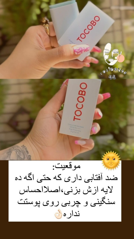 ضد آفتاب استیکی توکوبو محافظت بالا در برابر نور خورشید آبرسان و مرطوب کننده دارای بافت مات و پرایمر مانند ضد جوش و آکنه ضد التهاب و تسکین دهنده کنترل کننده چربی پوست قابل استفاده قبل و بعد آرایش وگان و فاقد تست حیوانی مناسب انواع پوست و پوست های حساس +Spf 50 +++PA حجم 19 گرم تاریخ انقضا 2026 تولید کنند:کره جنوبی @cosmetics4_4 @cosmetics4_4