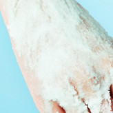 - مقدار کافی از نمک بدن را برداشته و بهآرامی روی پوست مرطوب خود بمالید. توجه ویژهای به نواحی تیره، زبر و حساس مانند زیر بغل، کشاله ران، آرنج و زانو داشته باشید.
