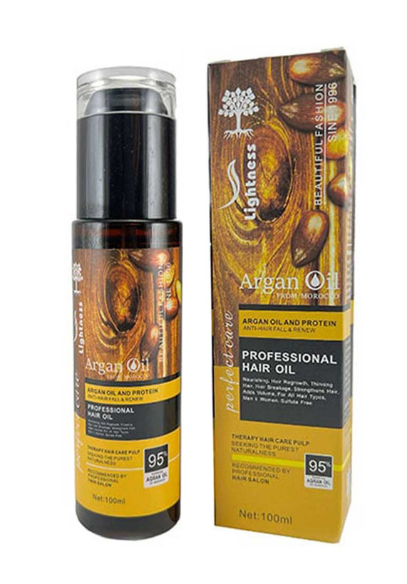 روغن مو آرگان لایتنس همانطور که میدانید حاوی 95% آرگان اورجینال و پروتئین میباشد که از ریزش و آسیب مو ها جلوگیری کرده و همچنین موجب رویش مجدد مو ها میشود. روغن مو لایتنس فاقد سولفات بوده و علاوه بر پروتئین و روغن آرگان درواقع حاوی ترکیباتی نظیر؛ کراتین، پارفین، گلیسیرین و روغن لیمو میباشد. این ترکیبات به دلیل داشتن خواص آنتی اکسیدانی، تقویتی و ضد باکتریایی، سبب افزایش رشد مو ها و نرم شدن آنها و چربی و مرطوب نگه داشتن تارمو ها میشود. به علاوه، گلوتامیک اسید موجود در این روغن مو نوعی آلفا آمینو اسید میباشد که از ترکیبات لازم و واجب برای رشد متداول مو بوده و موجب سنتز پروتئین و چربی شده که مانع از ریزش بیشتر موها میشود و نقش مهمی در سالم سازی موها ایفا میکند. این روغن مو فرمول و عملکرد بسیار فعال و پرو ویتامین B5 تار موهارا در تمام طیف خود درگیر میکند و برس کردن مو را آسان میکند و صافی و درخشندگی مو را تشدید میکند.